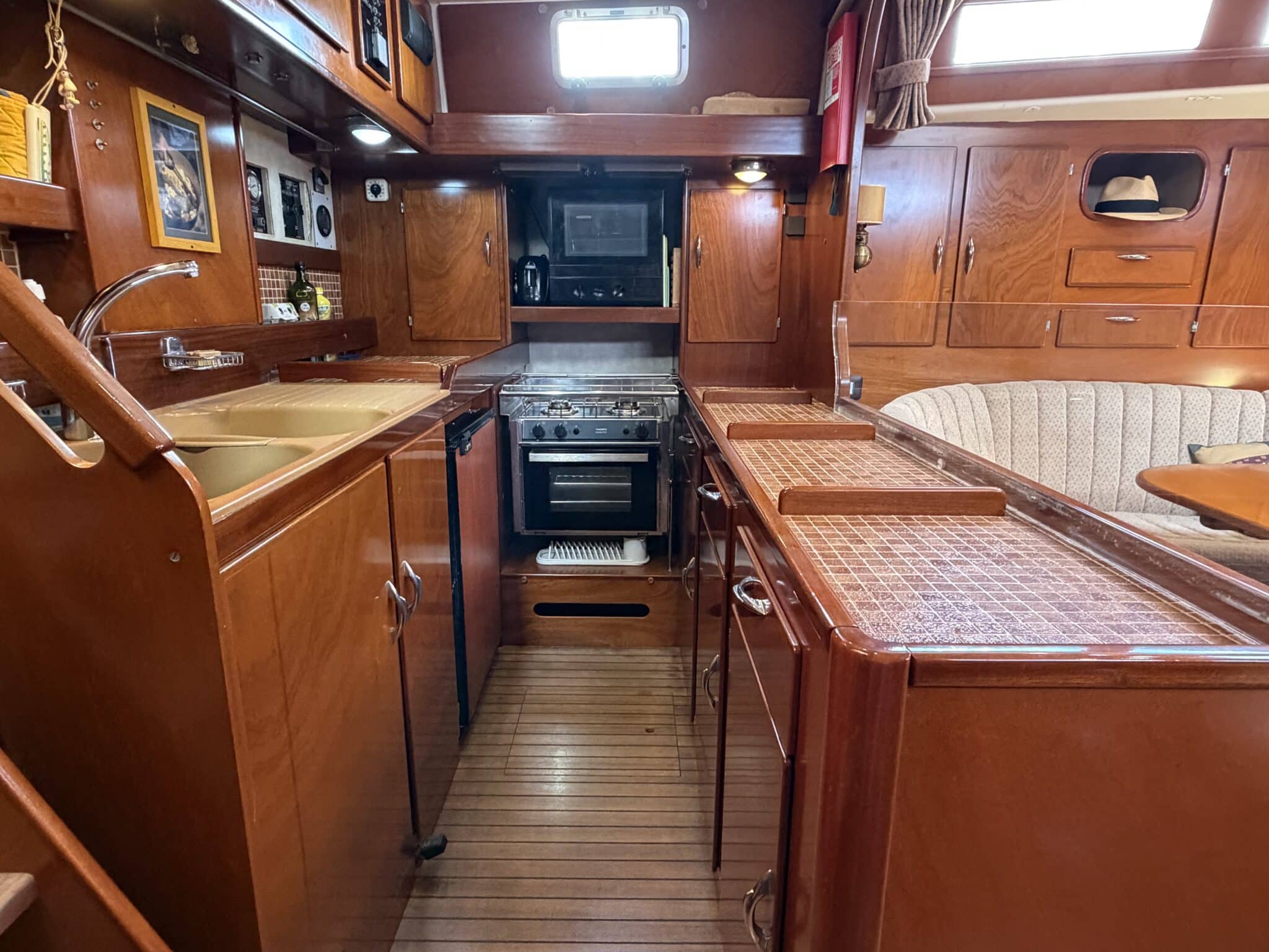 Puis a été méticuleusement préparé par ses propriétaires actuels pour le long cours. Voiles, gréement, 3 pilotes auto, mise à jour de la sécurité : tout a été pensé pour une navigation en toute sérénité.
